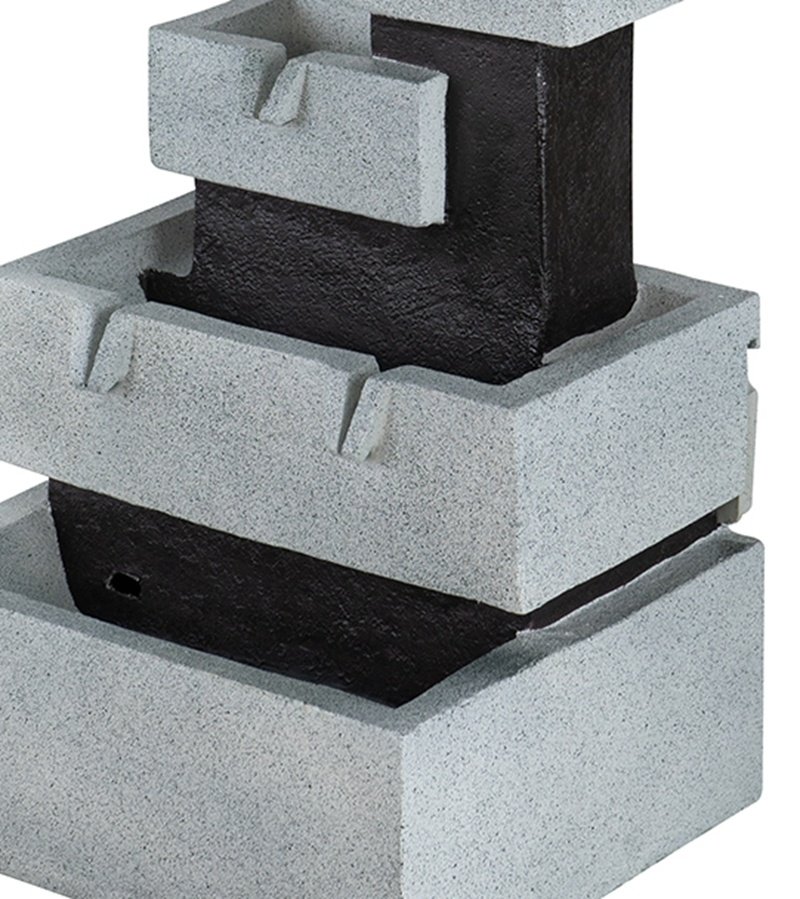 Introduce a modern minimalist flair into your garden, patio, or porch with this alluring water fountain. Boasting an understated blend of light gray and black tones and a four-tiered block-like silhouette, this fountain will elevate your decor while the cascading stream of water spreads a soothing ambiance.