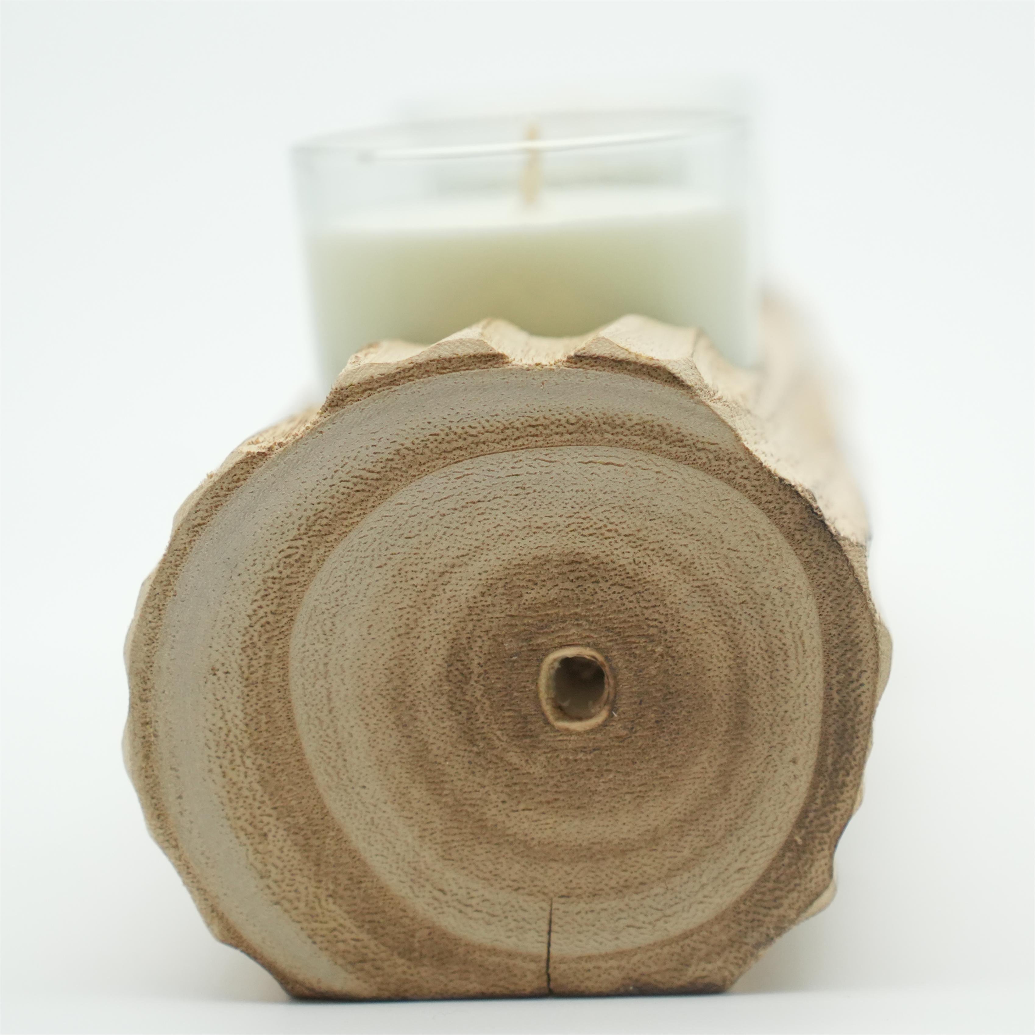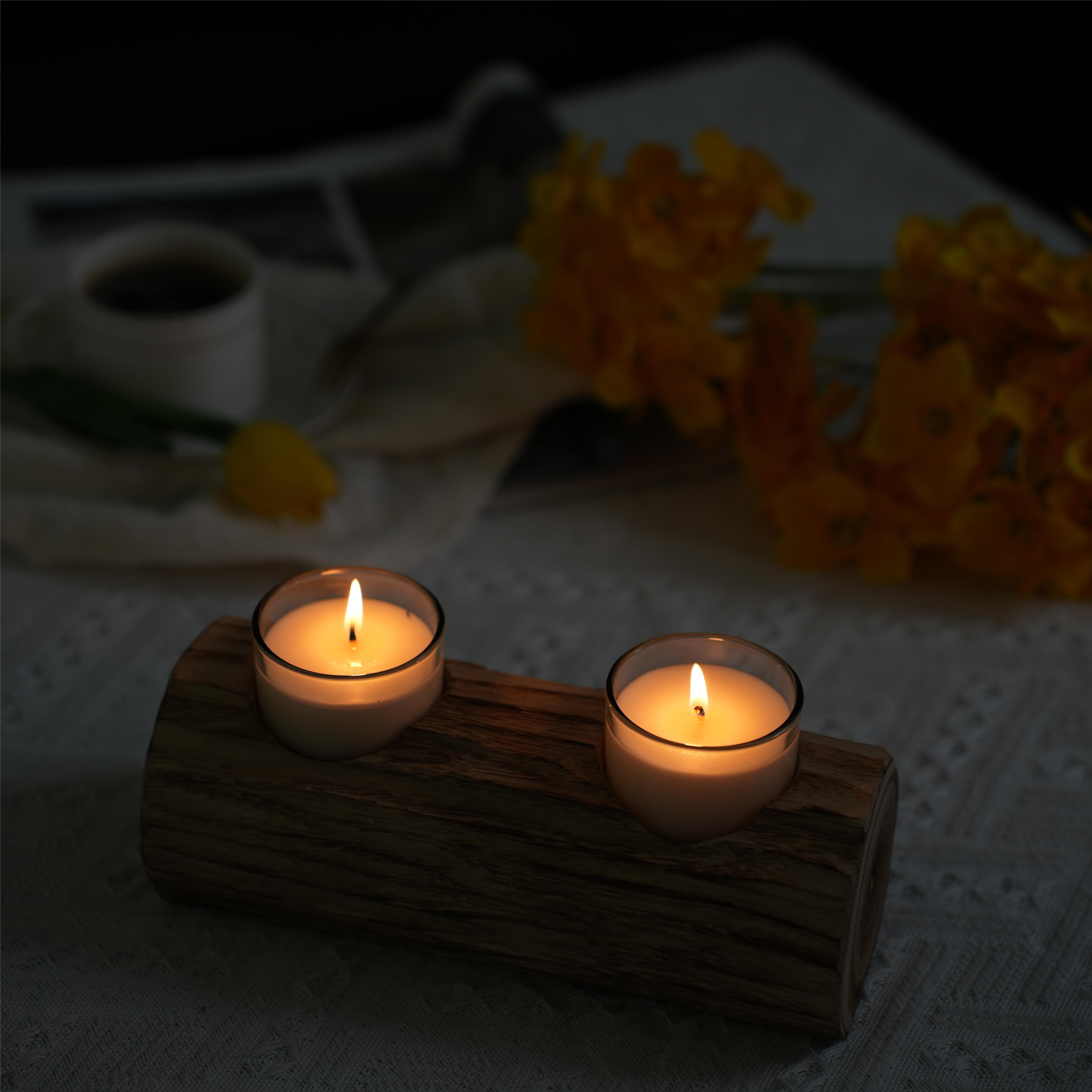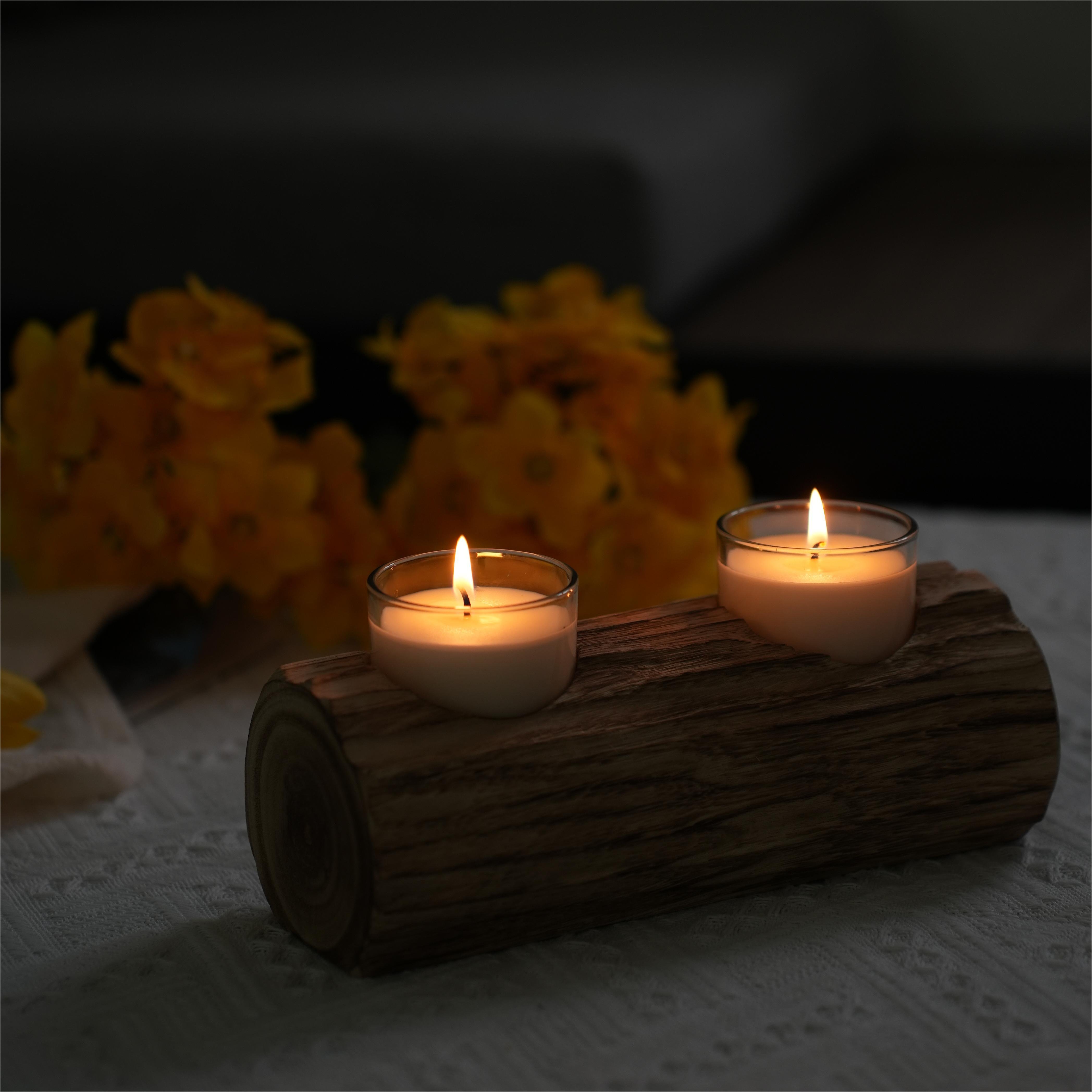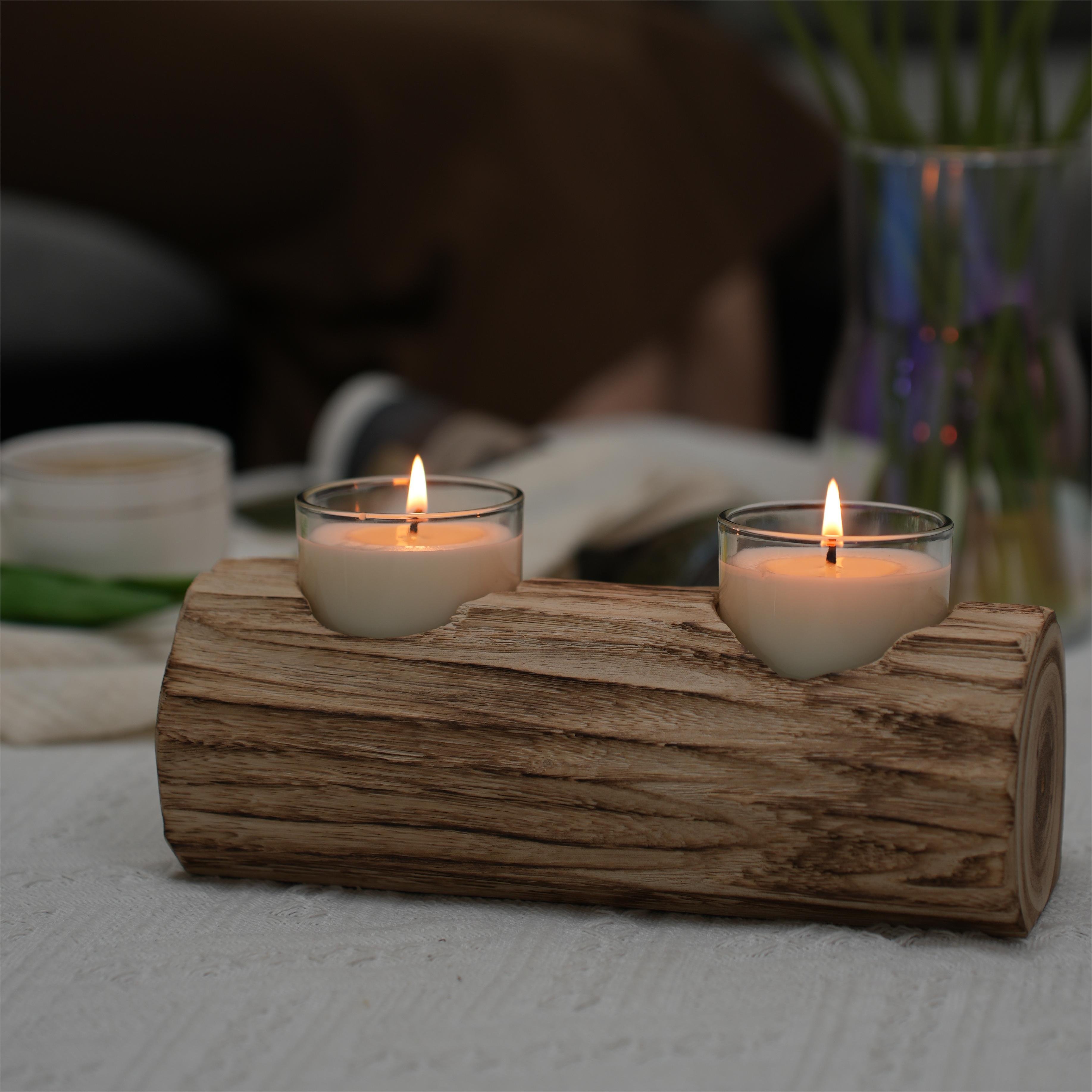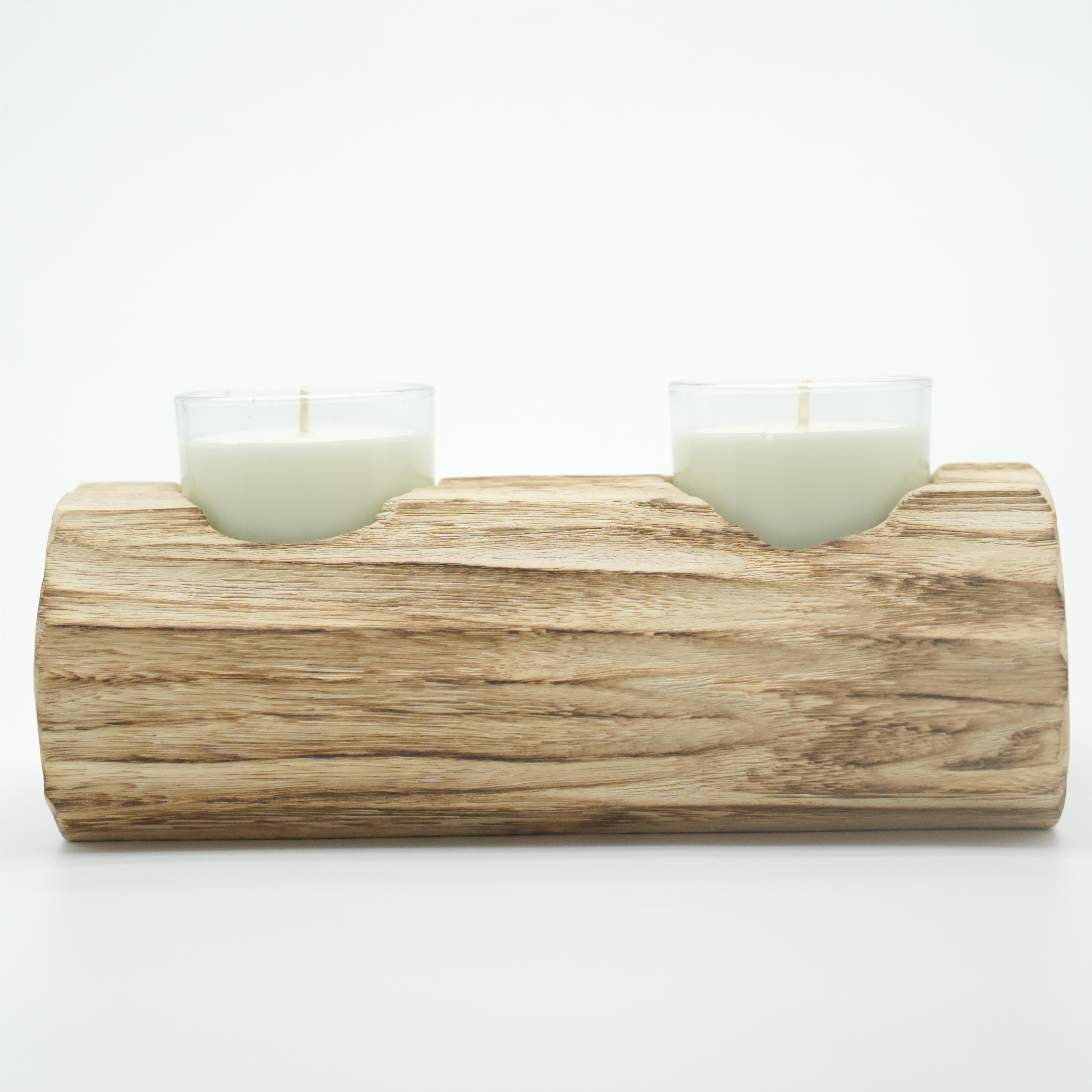 8.66'' L Brown Dual-Compartment Wooden Candle Holder