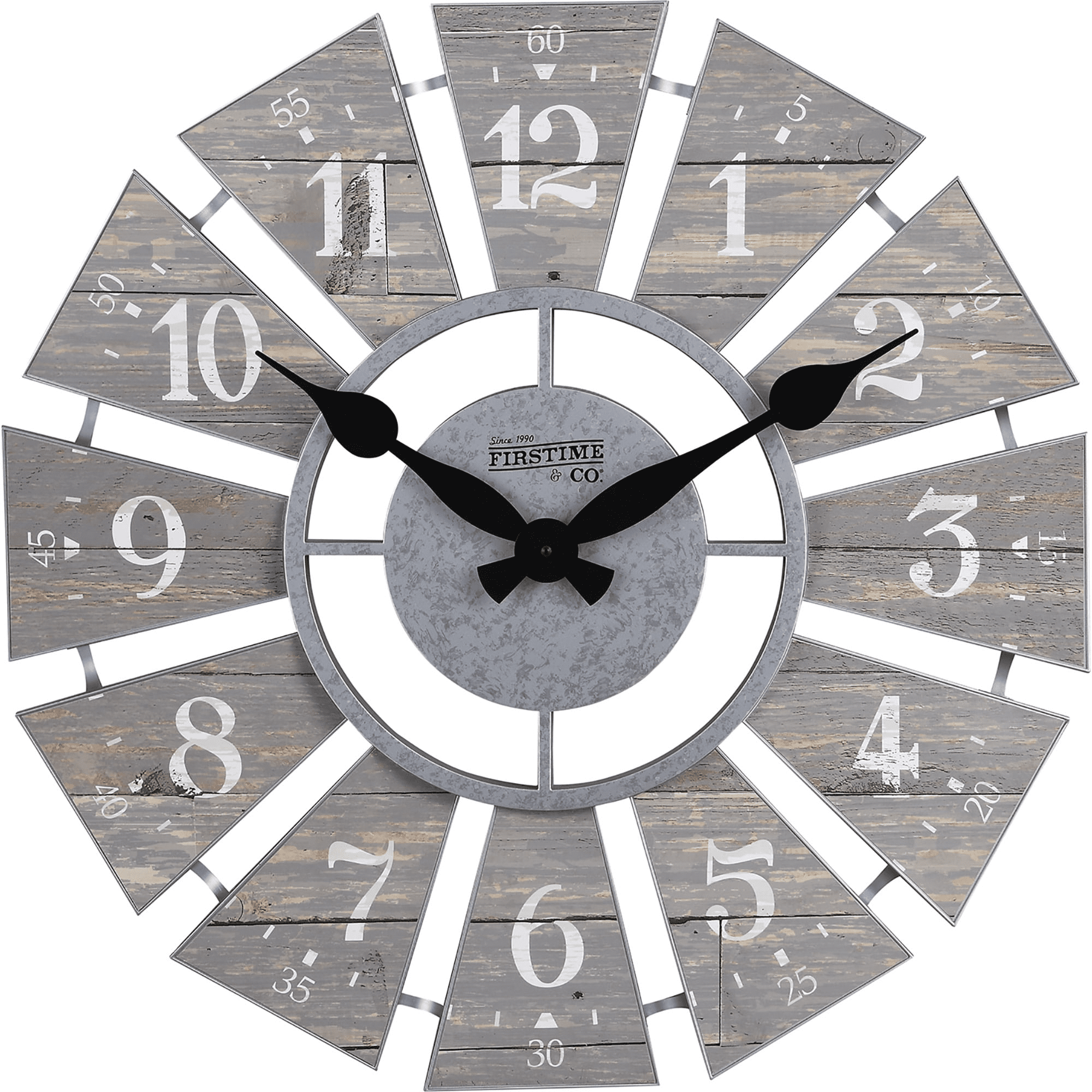 Size matters – our firstime & co.® gray numeral farmhouse windmill clock has a 24" diameter and 2" depth, making it a great size for any space.