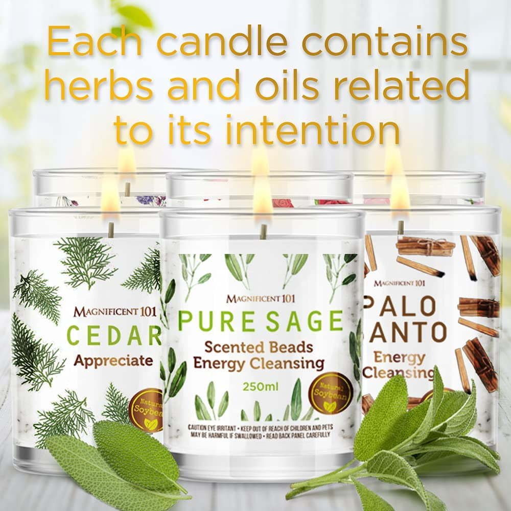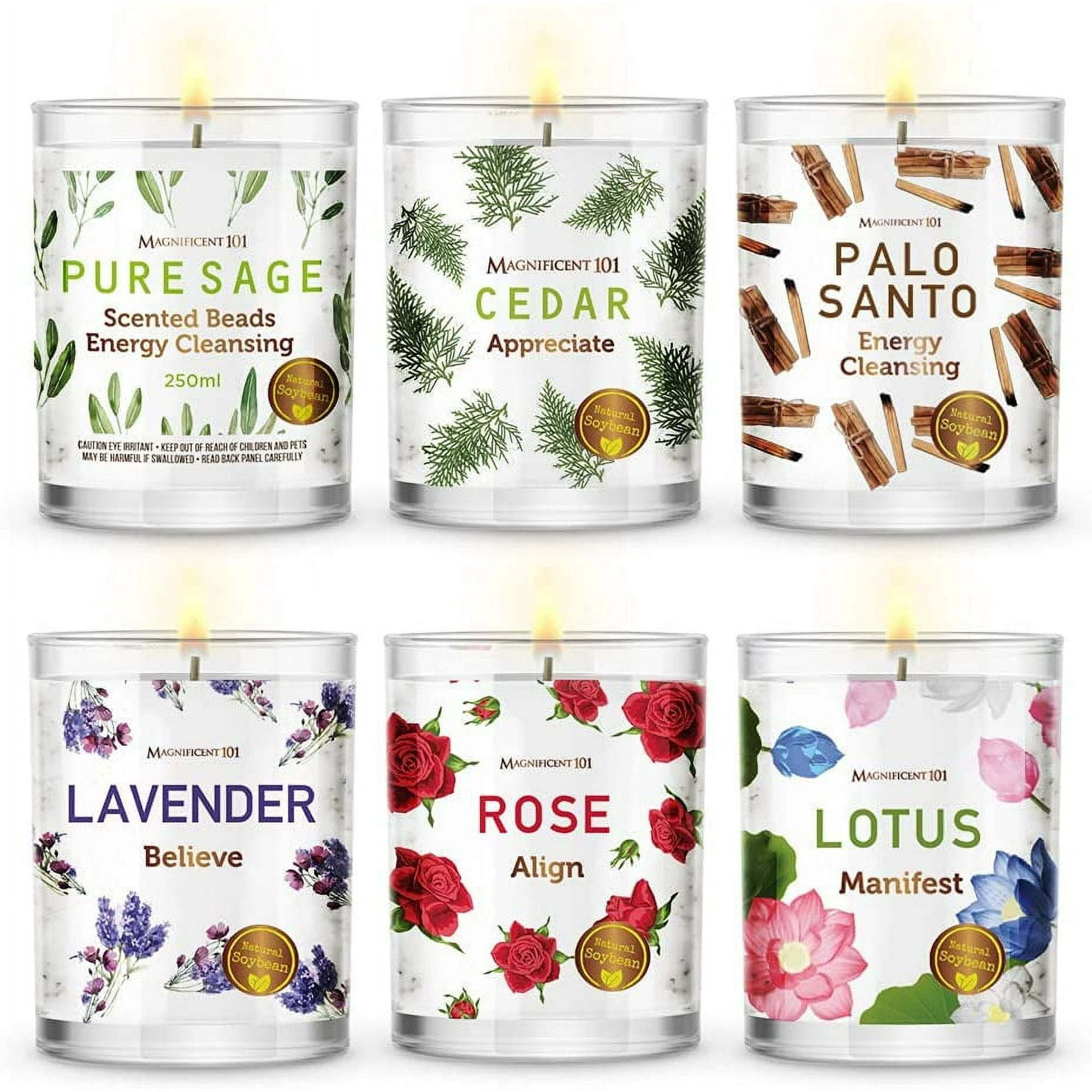 Home > Magnificent 101 6 Smudge 3.5oz Each 84hr Burn| All Natural & Organic Soy Wax Candles w/Cedar