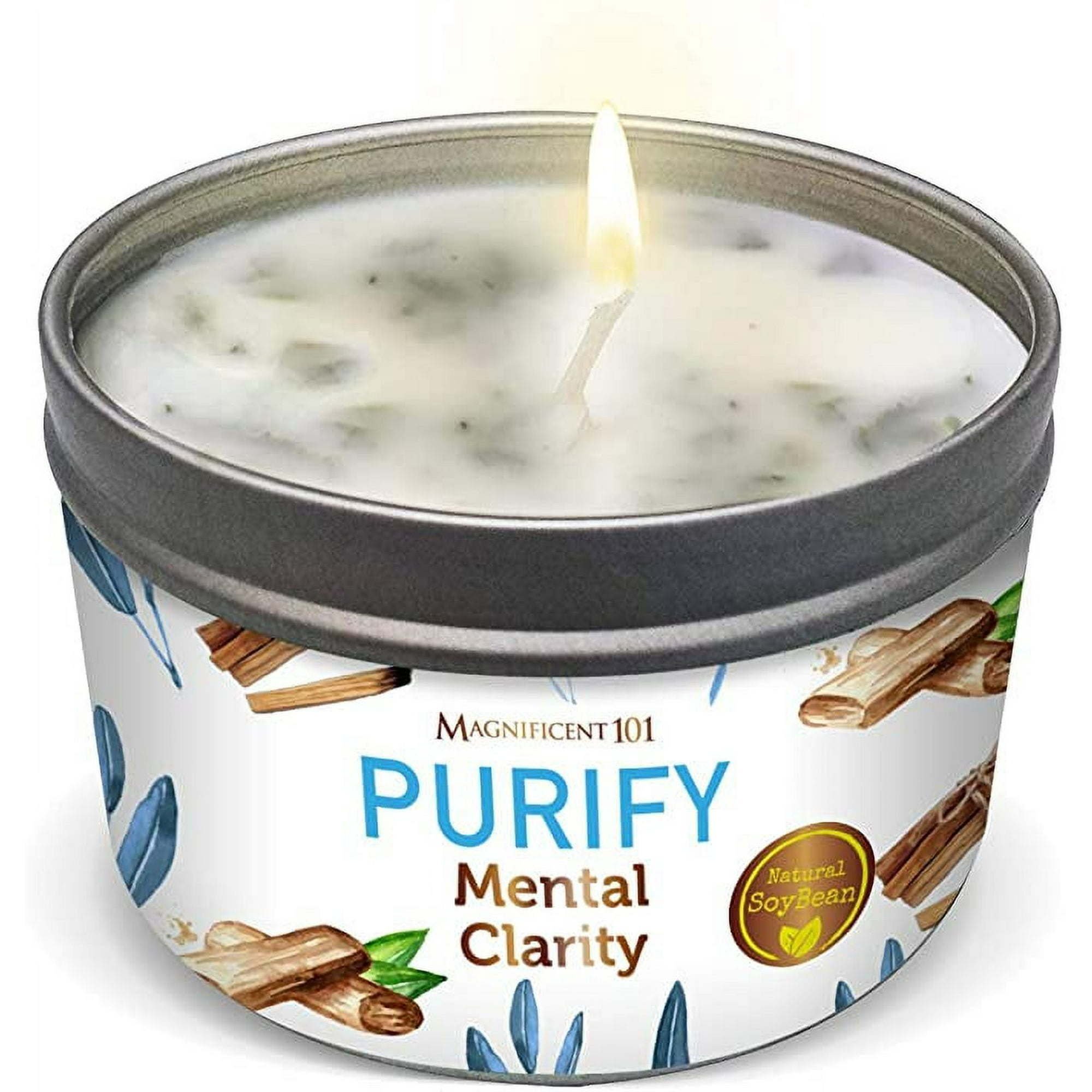 6 OZ AROMATHERAPY PURIFY CANDLE − Made of Natural Soybean Wax (SGS and MSDS Report available - No Petroleum or Paraffin Wax). Devoted to clearing and abundance blessings. This blend of abundance related Palo Santo, Sandalwood, Lavender, Sage herbs and essential oils is designed to create a natural abundance state in the home and body. PURIFY VIBES − Elevate your vibration while burning this candle. Smudging is a cleansing ceremony that involves burning herbs and oils in a manner that fills the home with the fragrance while energetically cleansing the space and body, making room for a new intention in your mind. It is used to attract a specific desired outcome and can be done as often as needed. ENERGY CLEANSING − It’s a good idea to have a door or window open while burning this candle. The negative energy and negativity have to have someplace to go! This helps make room in your mind for your new intention and what you want to attract into your life by raising your vibration. CLARITY FOR INTENTION SETTING − Choosing to sit and let go of negative thoughts in a ritual like this improves your mental clarity, allowing you to set your most genuine intention and make room for a new stage of good, elevated thoughts. Fill in the blank with your intention in lieu of what is being released. CHAKRA HEALING − This healing candle collection was designed for smudging, purification, stress relief, anxiety soothing, enhancing peaceful feelings and ultimately providing an energy boost. It provides a whole experience making it the perfect gift for women as well as men. Love, light, and positive energy goes into every candle.