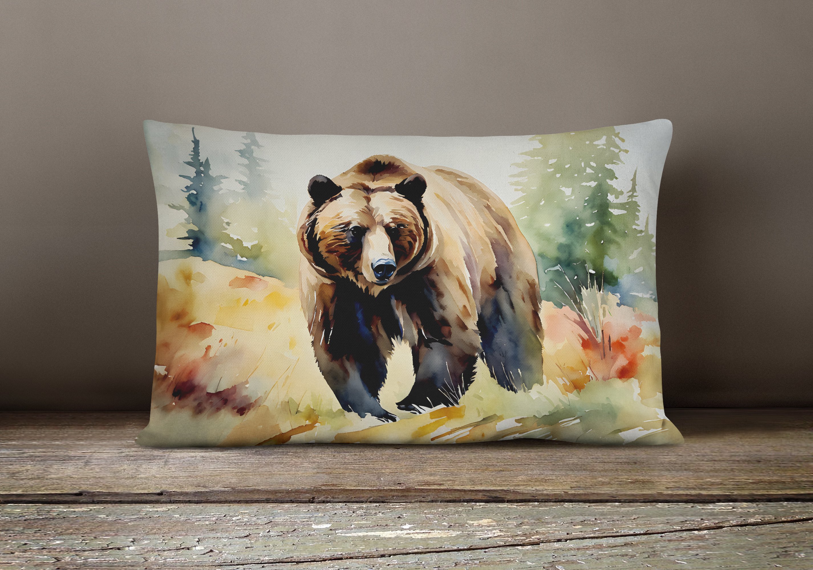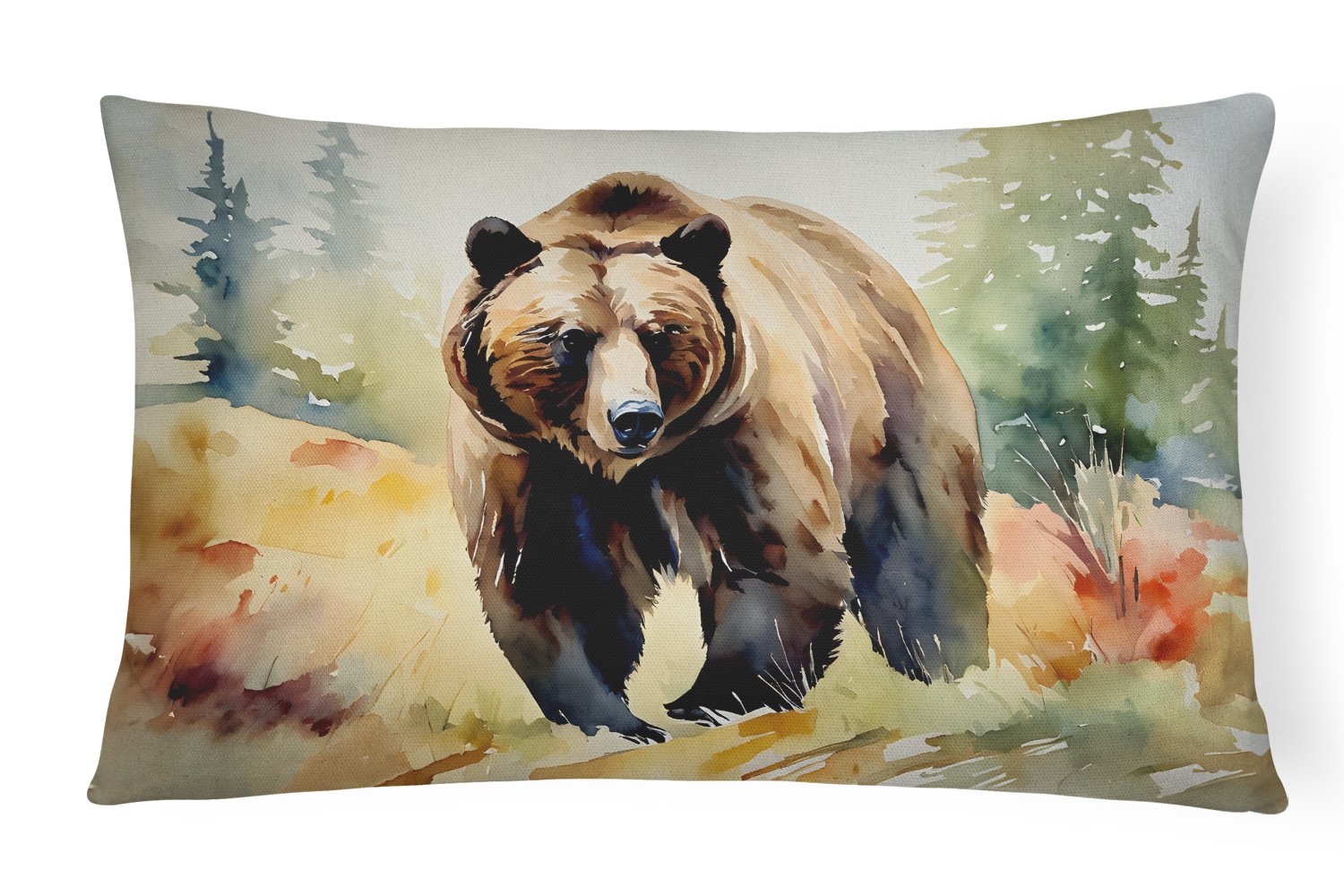NEW Watercolor Wildlife Throw Pillow Throw Indoor/Outdoor Patio Washable, Grizzly Bear 2925,12Hx16W