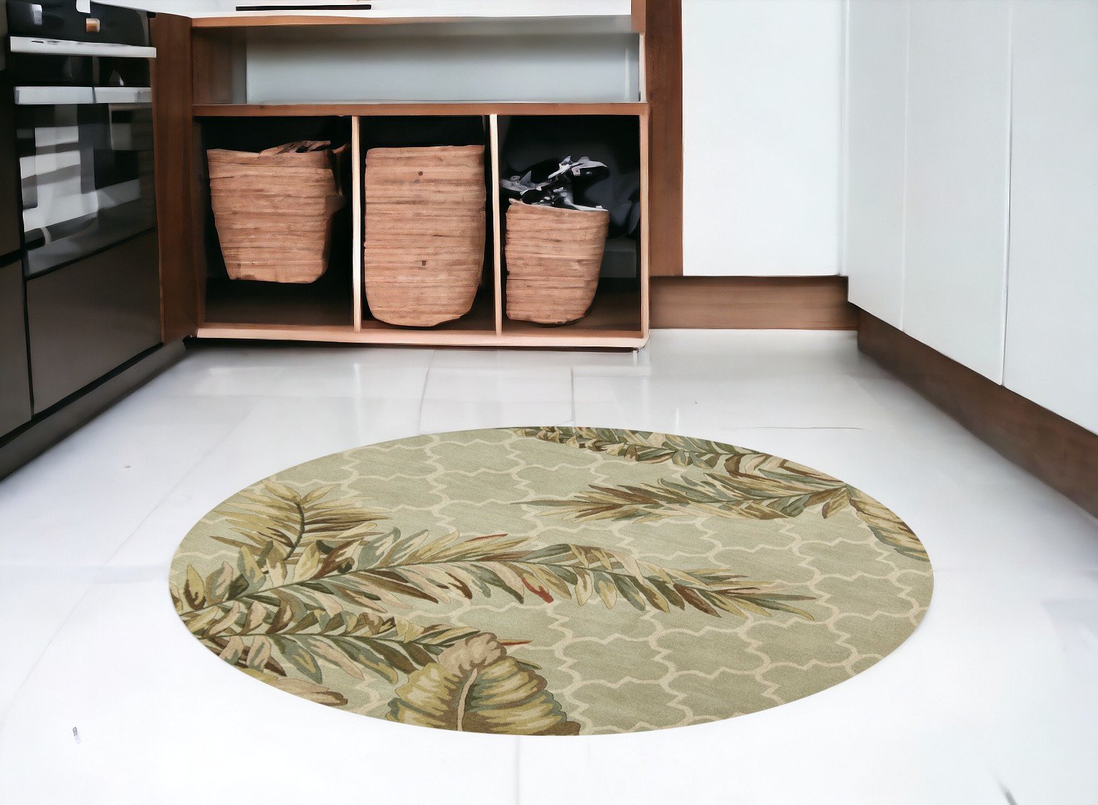 6' Sage Round Wool Tropical Botanical Hand Tufted Area Rug