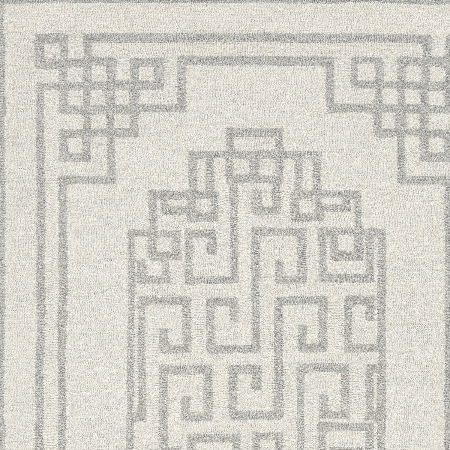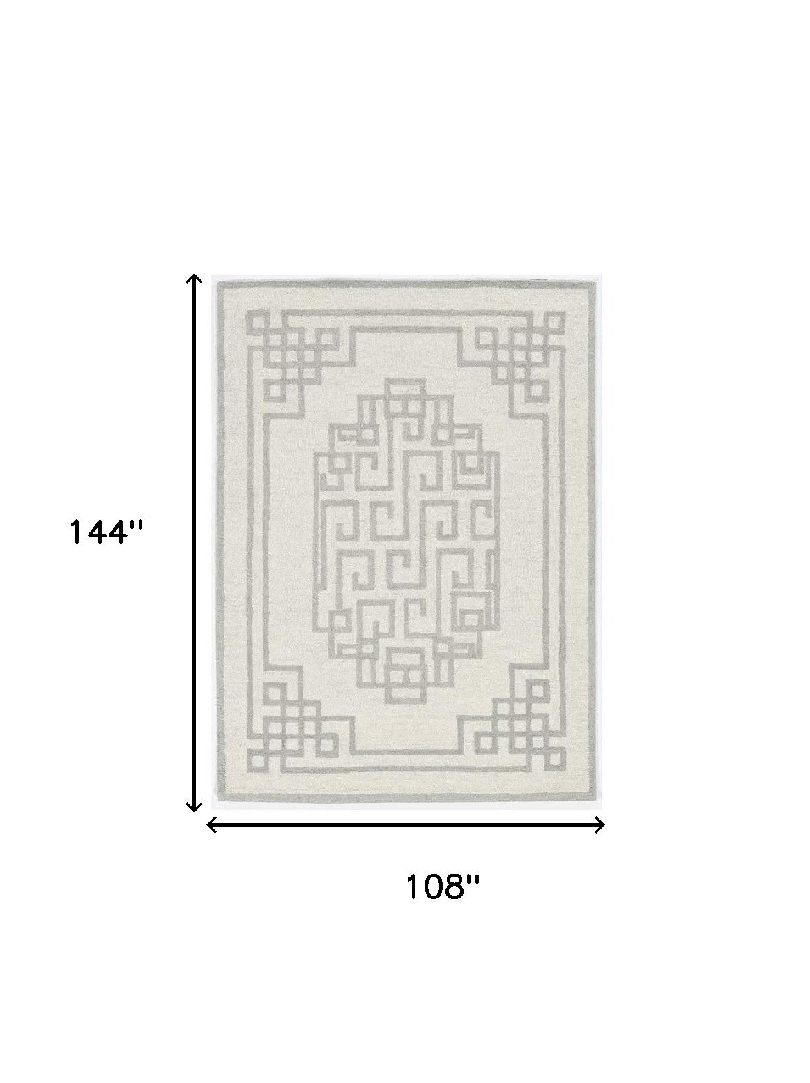 9' X 12' Ivory Grey Hand Tufted Bordered Greek Key Indoor Area Rug